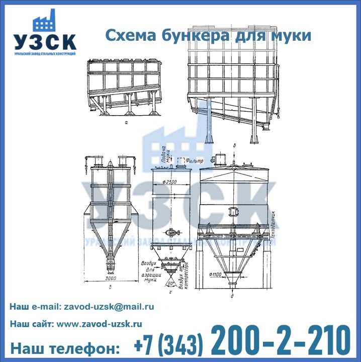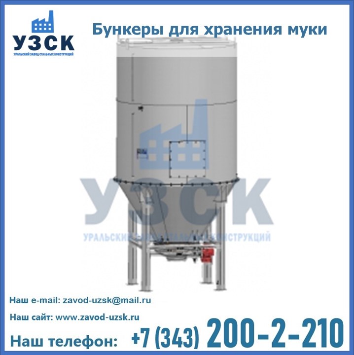 Завод «УЗСК» в Новом Уренгое проектирует, производит и поставляет целевое оборудование, в том числе, бункеры для хранения муки и прочих сыпучих материалов.