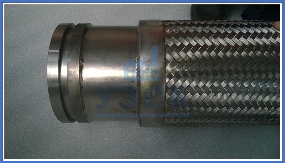 - Оплетка. Является одновременно покрытием и защитой от влияния факторов внешней среды, а также внутреннего давления в трубопроводах. Для создания оплетки используют металлическую проволоку толщиной от 0,3 мм, количеством нитей в пряди не менее 6, но не более 12. Перекрытие поверхности оплеткой составляет от 60 до 100% всего изделия.